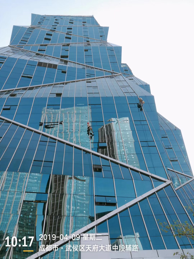 清潔項目特點:外墻玻璃、建筑比較有特色、歪曲轉角多、高空、服務對象結構復雜